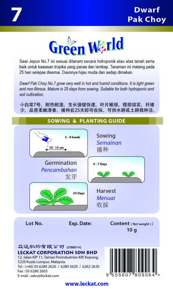 - Dwarf Pak Choy No.7 is a selected new variety.